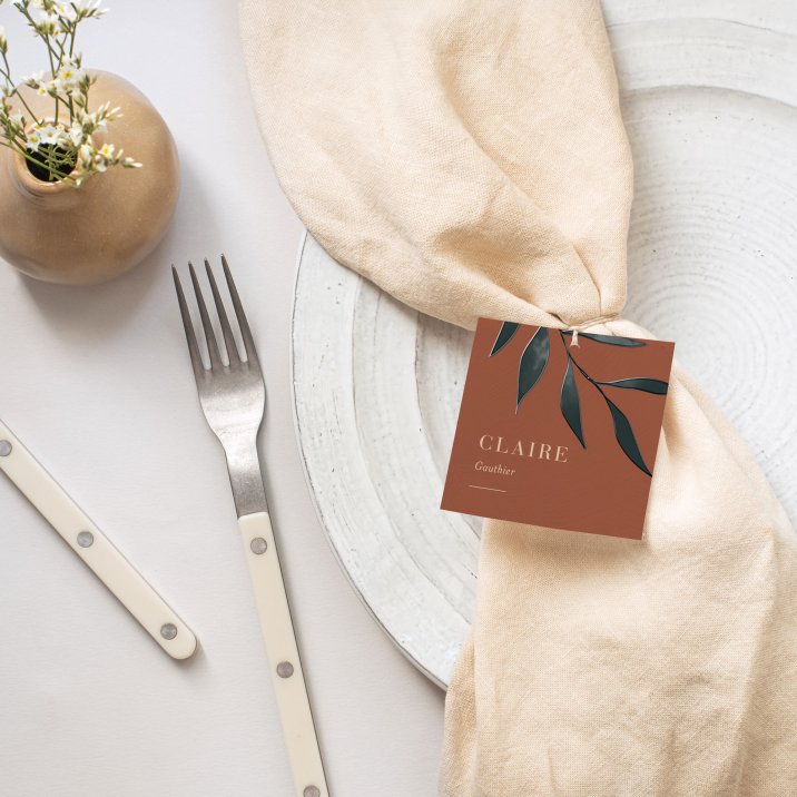 Astucieux et décoratifs ! Attachez-les autour de votre menu à l’aide d’un cordon en jute et glissez le tout dans une jolie serviette, pour que chacun de vos invités trouve sa place.