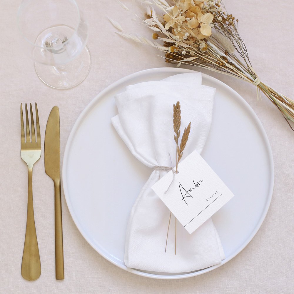 Astucieux et décoratifs ! Attachez-les autour de votre menu à l’aide d’un cordon en jute et glissez le tout dans une jolie serviette, pour que chacun de vos invités trouve sa place.
