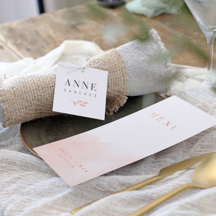 Astucieux et décoratifs ! Attachez-les autour de votre menu à l’aide d’un cordon en jute et glissez le tout dans une jolie serviette, pour que chacun de vos invités trouve sa place.