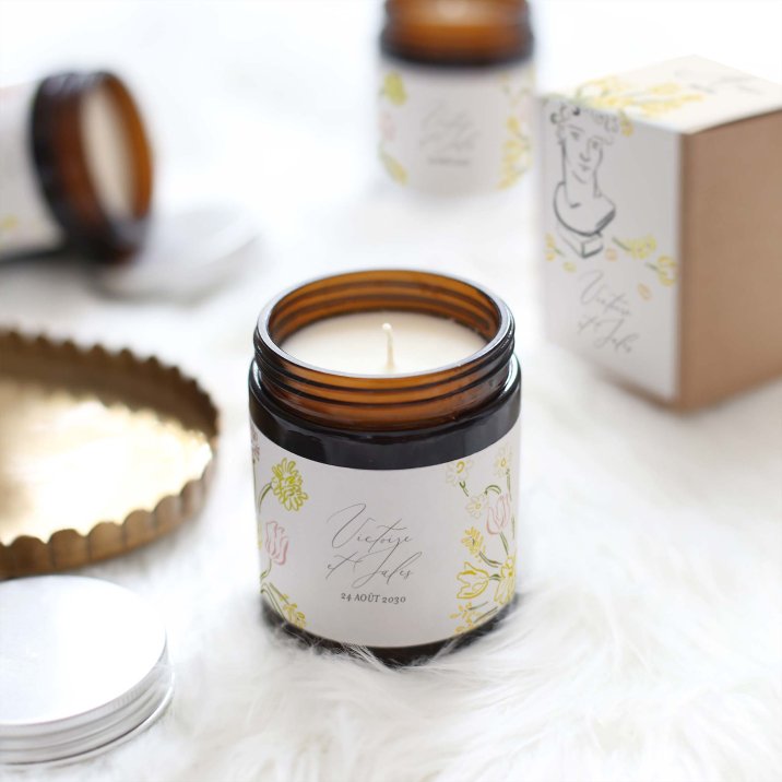 Faites briller le souvenir de votre mariage chez vos invités, grâce à cette bougie apothicaire. Son délicat parfum aux notes de figuier et son aspect vintage font d'elle un superbe cadeau d'invité de mariage.
