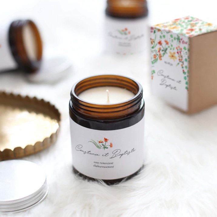 Faites briller le souvenir de votre mariage chez vos invités, grâce à cette bougie apothicaire. Son délicat parfum aux notes de figuier et son aspect vintage font d'elle un superbe cadeau d'invité de mariage.