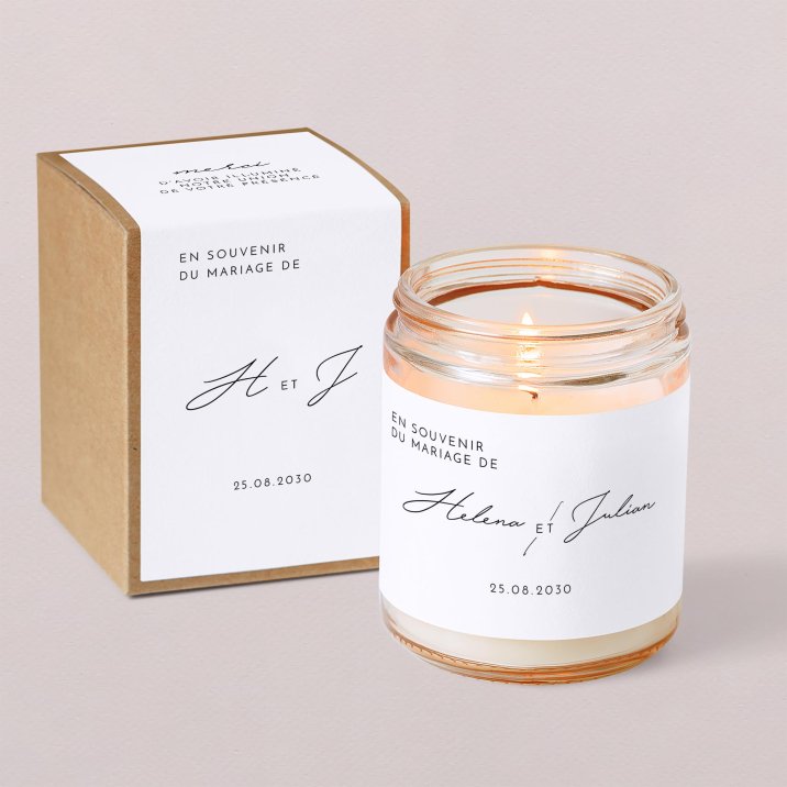 Faites briller le souvenir de votre mariage chez vos invités, grâce à cette bougie apothicaire. Son délicat parfum aux notes de figuier et son aspect vintage font d'elle un superbe cadeau d'invité de mariage.
