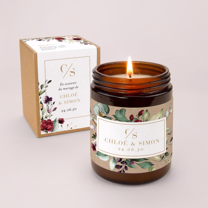 Faites briller le souvenir de votre mariage chez vos invités, grâce à cette bougie apothicaire. Son délicat parfum aux notes de figuier et son aspect vintage font d'elle un superbe cadeau d'invité de mariage.