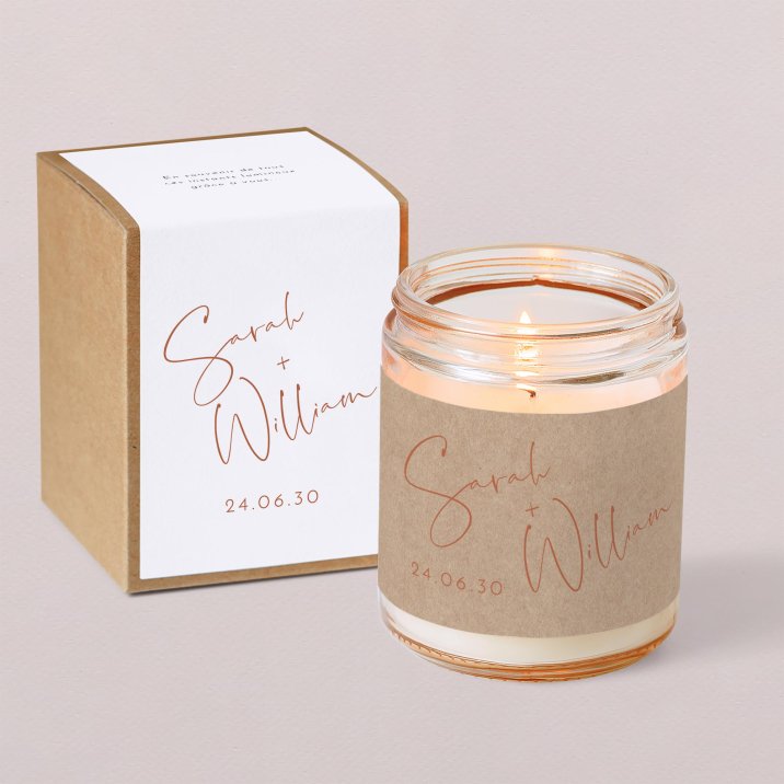Faites briller le souvenir de votre mariage chez vos invités, grâce à cette bougie apothicaire. Son délicat parfum aux notes de figuier et son aspect vintage font d'elle un superbe cadeau d'invité de mariage.