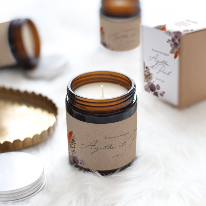 Faites briller le souvenir de votre mariage chez vos invités, grâce à cette bougie apothicaire. Son délicat parfum aux notes de figuier et son aspect vintage font d'elle un superbe cadeau d'invité de mariage.