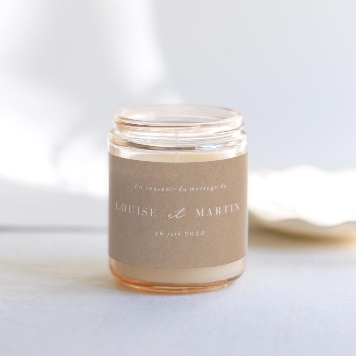 Faites briller le souvenir de votre mariage chez vos invités, grâce à cette bougie apothicaire. Son délicat parfum aux notes de figuier et son aspect vintage font d'elle un superbe cadeau d'invité de mariage.