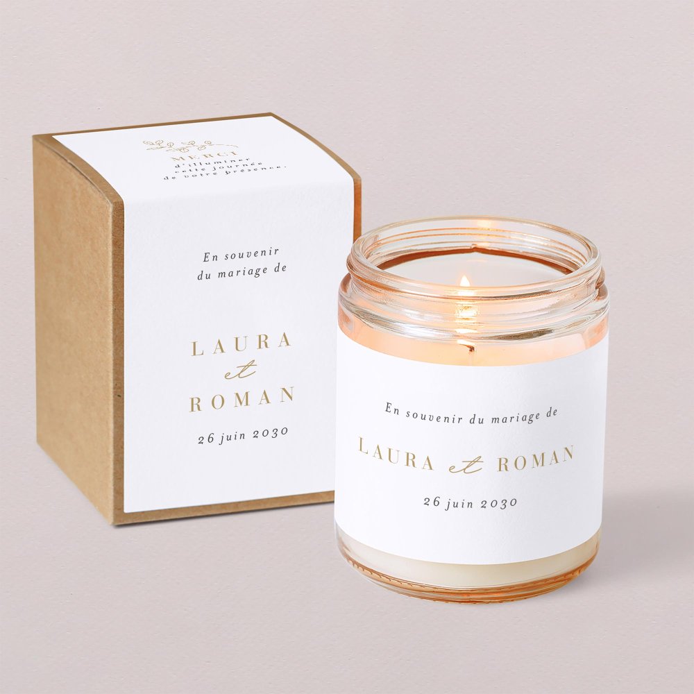 Faites briller le souvenir de votre mariage chez vos invités, grâce à cette bougie apothicaire. Son délicat parfum aux notes de figuier et son aspect vintage font d'elle un superbe cadeau d'invité de mariage.