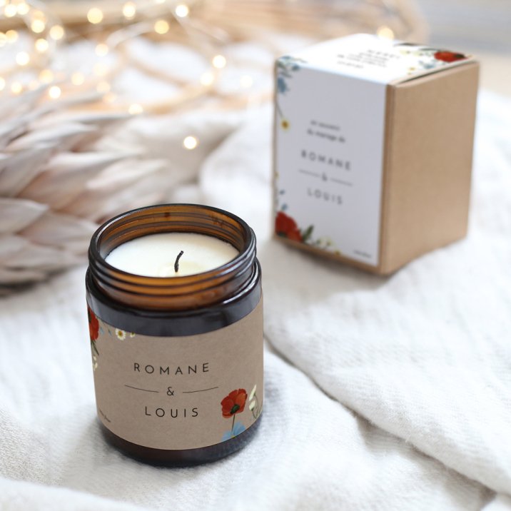 Faites briller le souvenir de votre mariage chez vos invités, grâce à cette bougie apothicaire. Son délicat parfum aux notes de figuier et son aspect vintage font d'elle un superbe cadeau d'invité de mariage.
