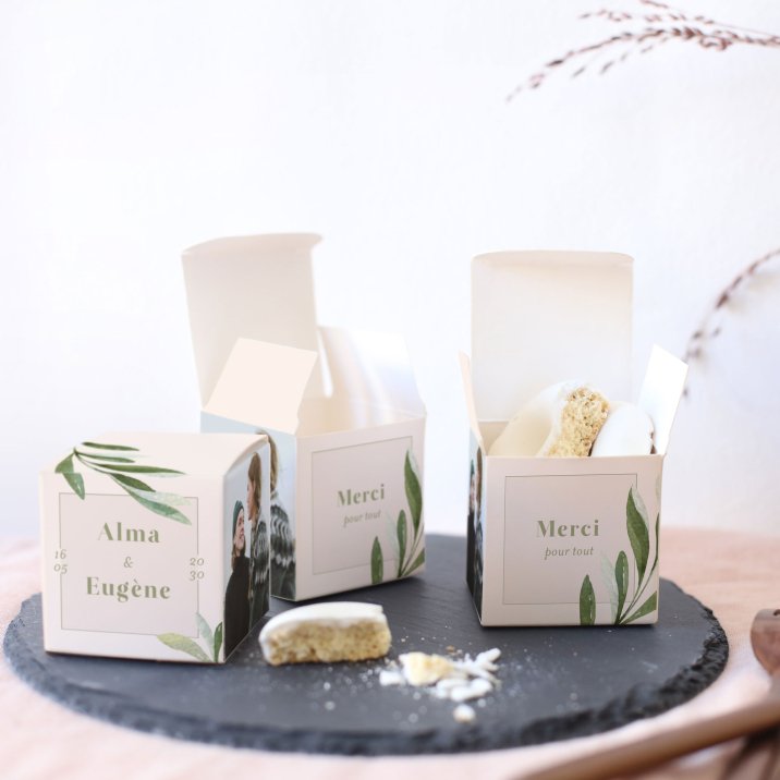 C'est la petite boîte (5,4 x 5,4 cm) parfaite pour y placer des confiseries, dragées ou autres jolies surprises. Un cadeau invité mariage original à déposer sur les tables, puis à offrir à vos invités en souvenir de votre beau jour !