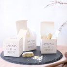C'est la petite boîte (5,4 x 5,4 cm) parfaite pour y placer des confiseries, dragées ou autres jolies surprises. Un cadeau invité mariage original à déposer sur les tables, puis à offrir à vos invités en souvenir de votre beau jour !