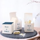 Pour enchanter vos invités, garnissez ce petit cube surprise de délicieuses dragées (disponibles en option), fabriquées artisanalement dans le sud de la France. Nous vous conseillons d’ajouter 20 dragées par boîte (50 g).