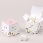 Pour enchanter vos invités, garnissez ce petit cube surprise de délicieuses dragées (disponibles en option), fabriquées artisanalement dans le sud de la France. Nous vous conseillons d’ajouter 20 dragées par boîte (50 g).