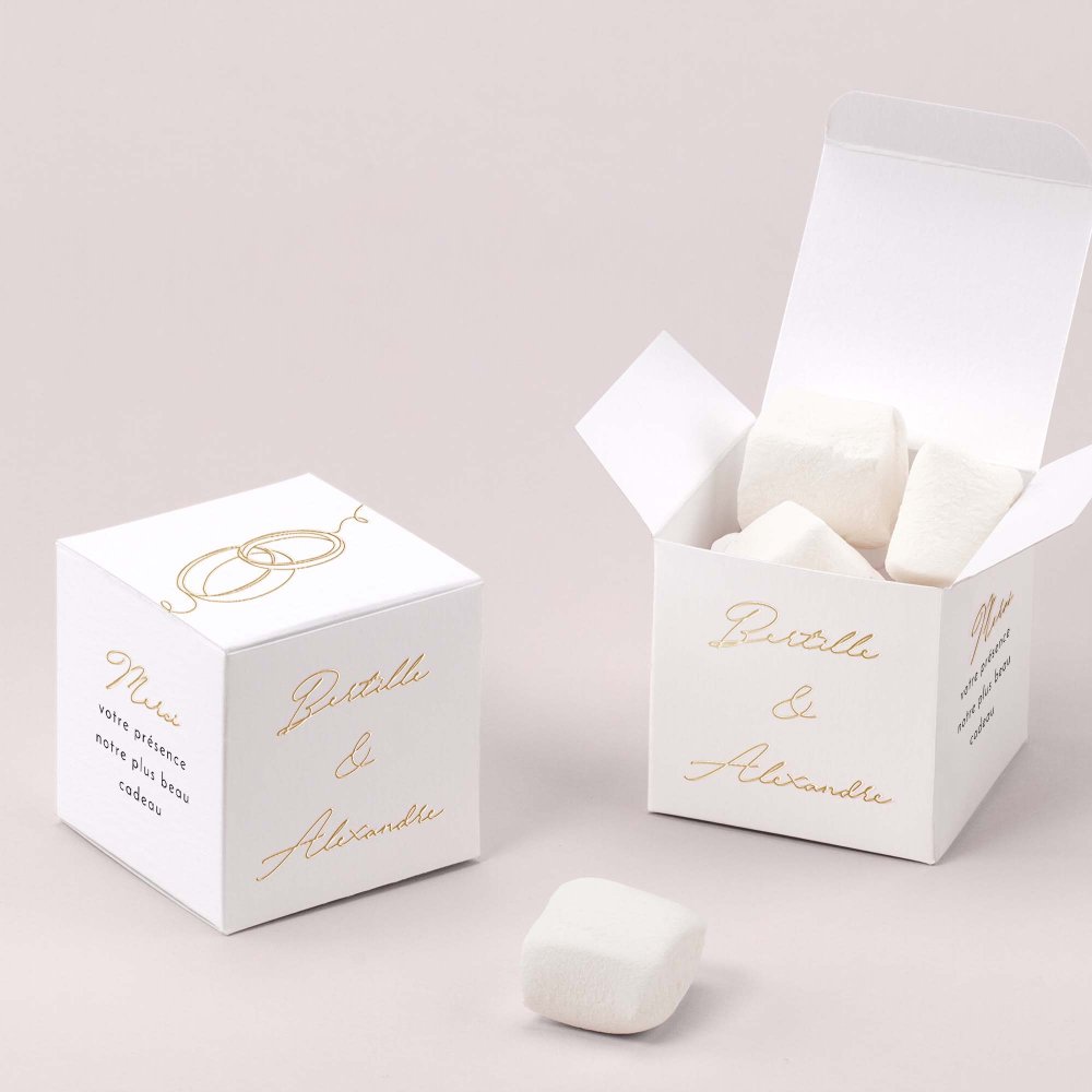 C'est la petite boîte (5,4 x 5,4 cm) parfaite pour y placer des confiseries, dragées ou autres jolies surprises. Un cadeau invité mariage original à déposer sur les tables, puis à offrir à vos invités en souvenir de votre beau jour !