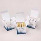Pour enchanter vos invités, garnissez ce petit cube surprise de délicieuses dragées (disponibles en option), fabriquées artisanalement dans le sud de la France. Nous vous conseillons d’ajouter 20 dragées par boîte (50 g).