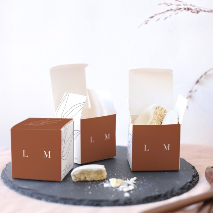 C'est la petite boîte (5,4 x 5,4 cm) parfaite pour y placer des confiseries, dragées ou autres jolies surprises. Un cadeau invité mariage original à déposer sur les tables, puis à offrir à vos invités en souvenir de votre beau jour !