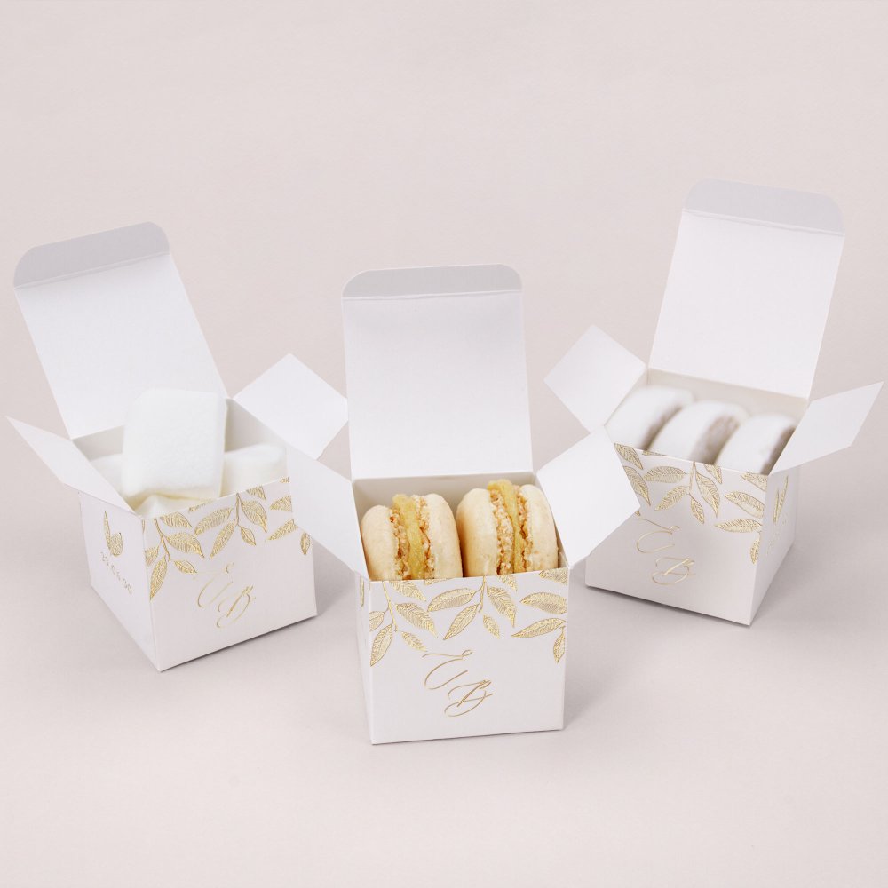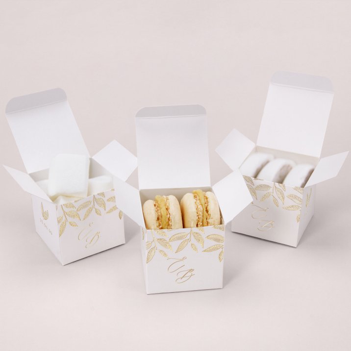 C'est la petite boîte (5,4 x 5,4 cm) parfaite pour y placer des confiseries, dragées ou autres jolies surprises. Un cadeau invité mariage original à déposer sur les tables, puis à offrir à vos invités en souvenir de votre beau jour !