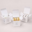 C'est la petite boîte (5,4 x 5,4 cm) parfaite pour y placer des confiseries, dragées ou autres jolies surprises. Un cadeau invité mariage original à déposer sur les tables, puis à offrir à vos invités en souvenir de votre beau jour !