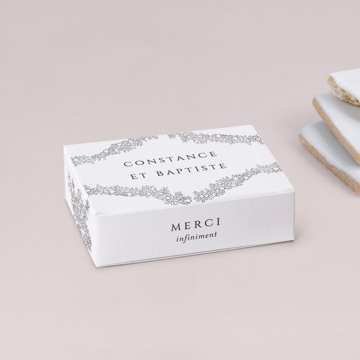 Remerciez vos invités de mariage avec un cadeau élégant : la boîte à biscuits personnalisée.