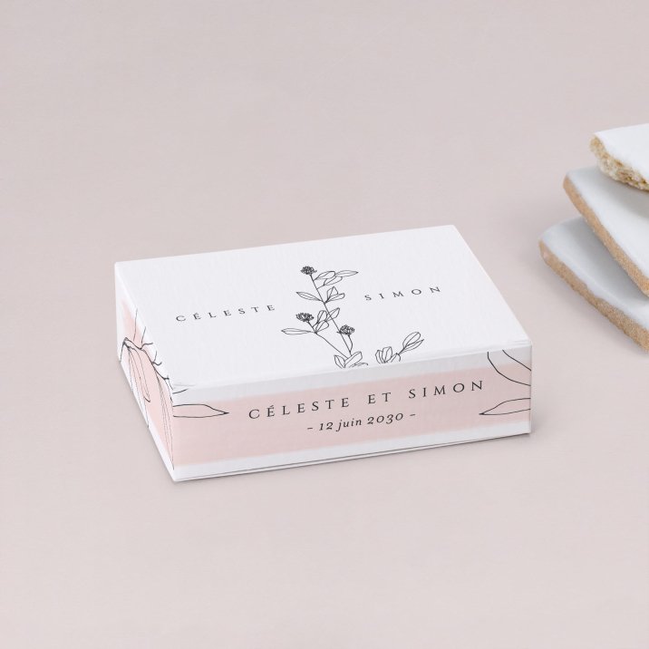 Laissez-vous séduire par le design du modèle Délicate et personnalisez vos boîtes avec vos prénoms, vos initiales, un petit mot...