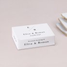 Sublimée avec vos prénoms, la date de votre mariage et votre mot de remerciement, elle est à garnir avec de petits biscuits ou douceurs de votre choix (non inclus).