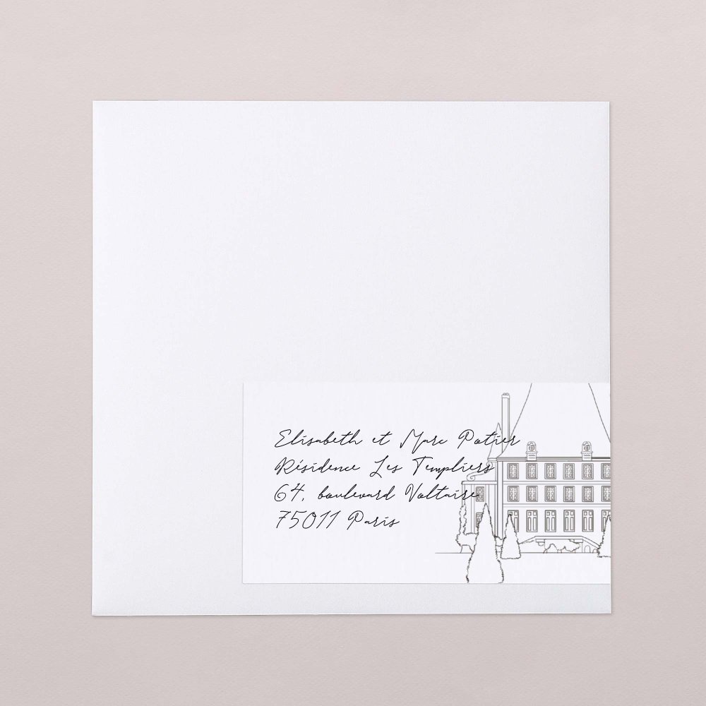 Votre adresse sera imprimée sur le côté droit (pour le dos de l'enveloppe), il ne vous restera ainsi plus qu'à écrire les adresses de vos invités sur le côté gauche pour les envoyer !
