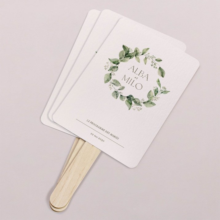 Distribués à l'entrée de la messe, ou à placer dans une grande corbeille à la disposition de chacun, nos éventails programme donnent le ton de la cérémonie, renseignent vos convives sur le déroulement de la journée et ... très utiles par grande chaleur, rafraîchiront l'assemblée !