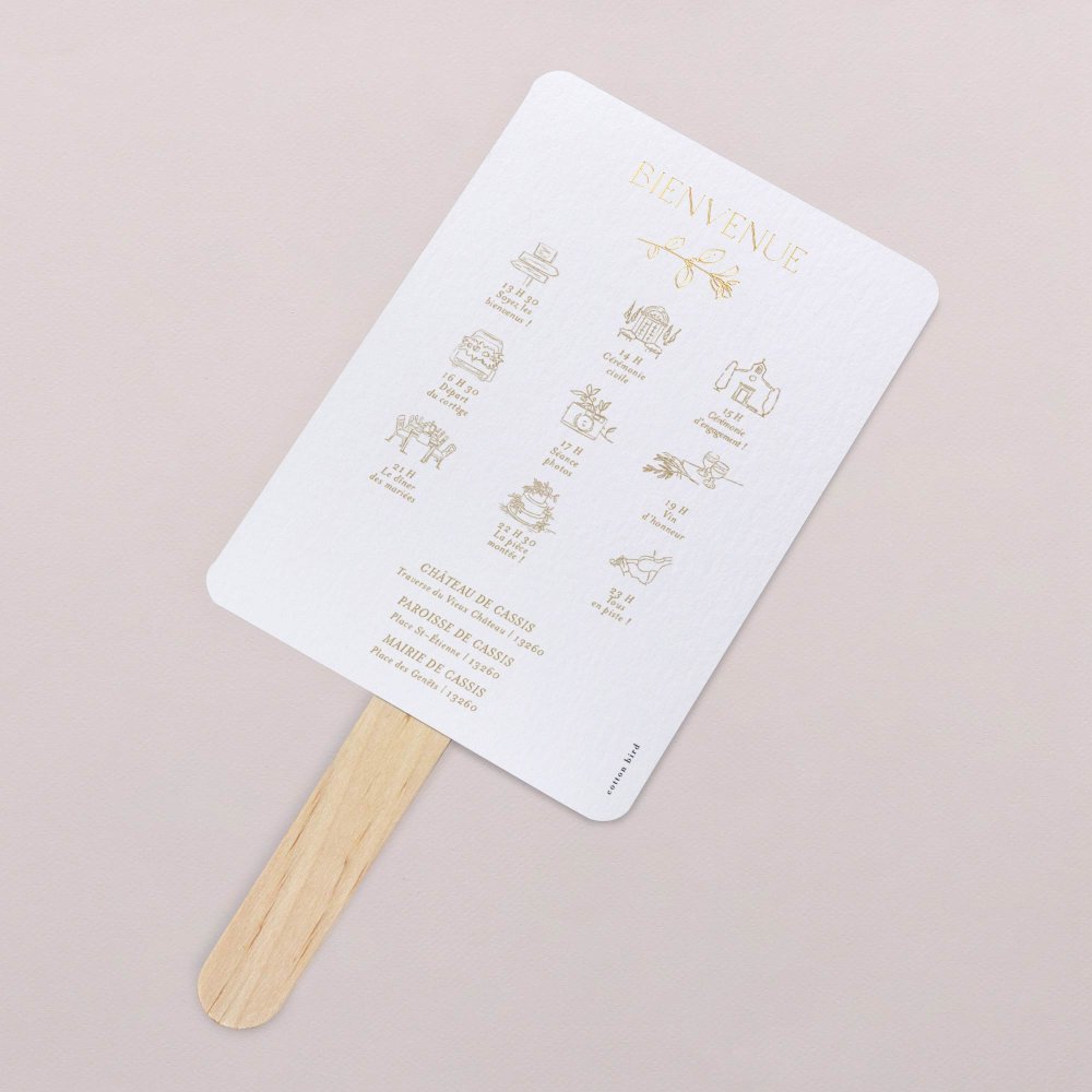 Distribués à l'entrée de la messe, ou à placer dans une grande corbeille à la disposition de chacun, nos éventails programme donnent le ton de la cérémonie, renseignent vos convives sur le déroulement de la journée et ... très utiles par grande chaleur, rafraîchiront l'assemblée !