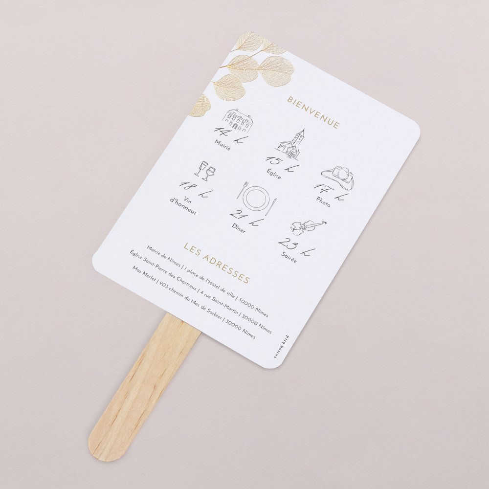 Distribués à l'entrée de la messe, ou à placer dans une grande corbeille à la disposition de chacun, nos éventails programme donnent le ton de la cérémonie, renseignent vos convives sur le déroulement de la journée et ... très utiles par grande chaleur, rafraîchiront l'assemblée !