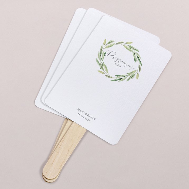 Distribués à l'entrée de la messe, ou à placer dans une grande corbeille à la disposition de chacun, nos éventails programme donnent le ton de la cérémonie, renseignent vos convives sur le déroulement de la journée et ... très utiles par grande chaleur, rafraîchiront l'assemblée !