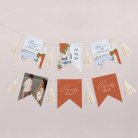Cette guirlande de 16 fanions recto-verso se personnalise avec vos prénoms, la photo de votre couple, la date de votre mariage, un petit mot de bienvenue…