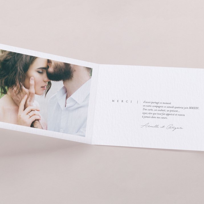 Faites de cette carte de remerciements un souvenir inoubliable en la personnalisant avec vos photos.