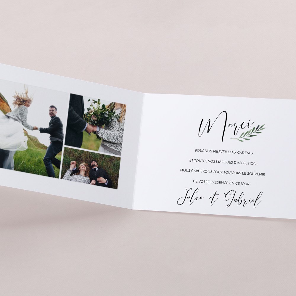 Faites de cette carte de remerciements un souvenir inoubliable en la personnalisant avec vos photos.