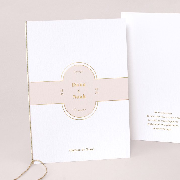 Couverture de livret de messe assortie à votre faire-part, agrémentée d'un ruban (en option et coloris au choix). Les feuillets intérieurs ne sont pas fournis.