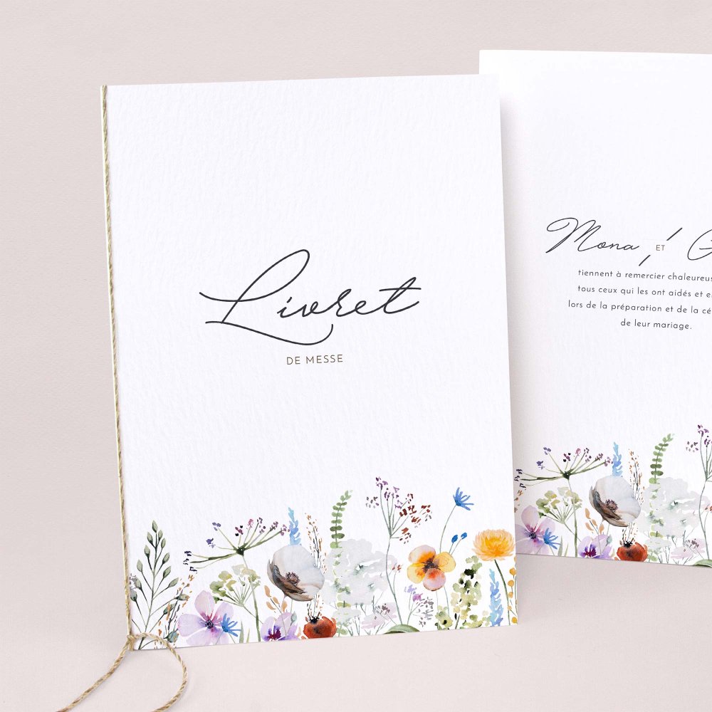 Couverture de livret de messe assortie à votre faire-part, agrémentée d'un ruban (en option et coloris au choix). Les feuillets intérieurs ne sont pas fournis.