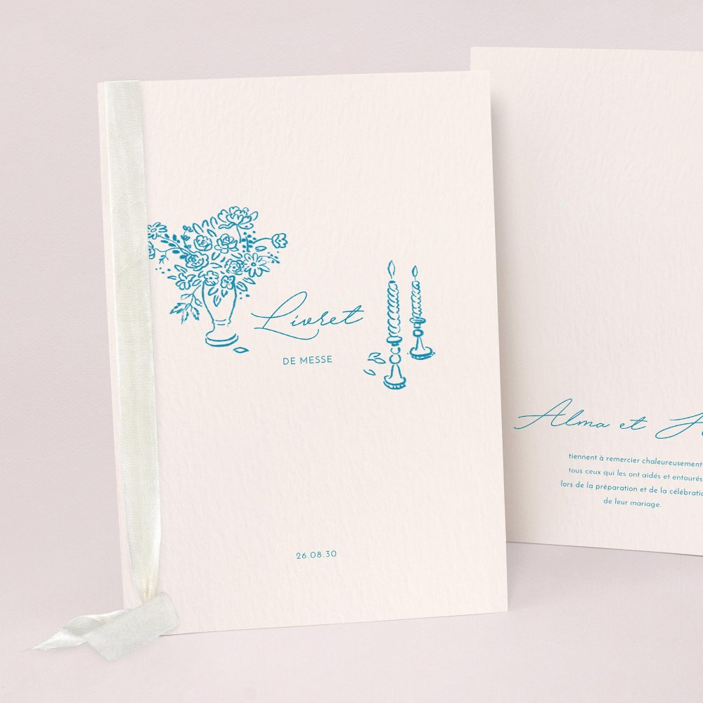 Couverture de livret de messe assortie à votre faire-part, agrémentée d'un ruban (en option et coloris au choix). Les feuillets intérieurs ne sont pas fournis.