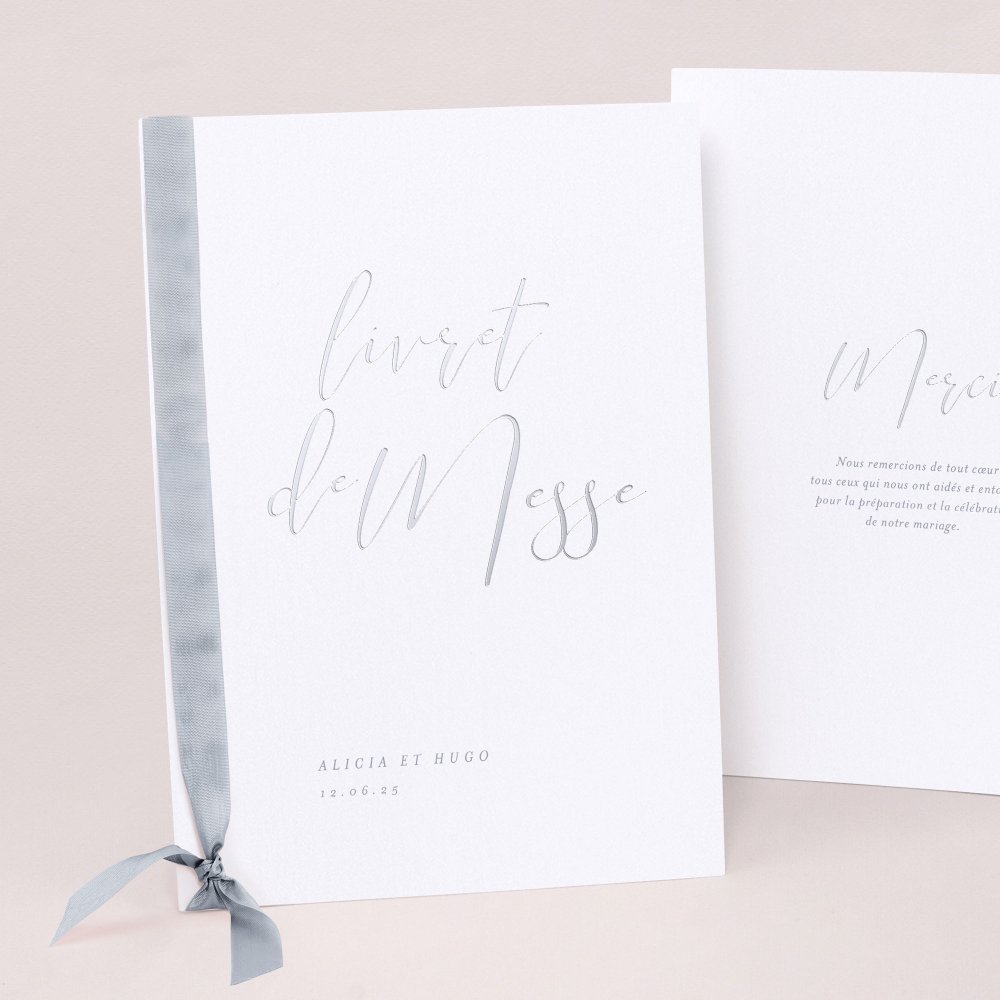 Couverture de livret de messe assortie à votre faire-part, agrémentée d'un ruban (en option et coloris au choix). Les feuillets intérieurs ne sont pas fournis.