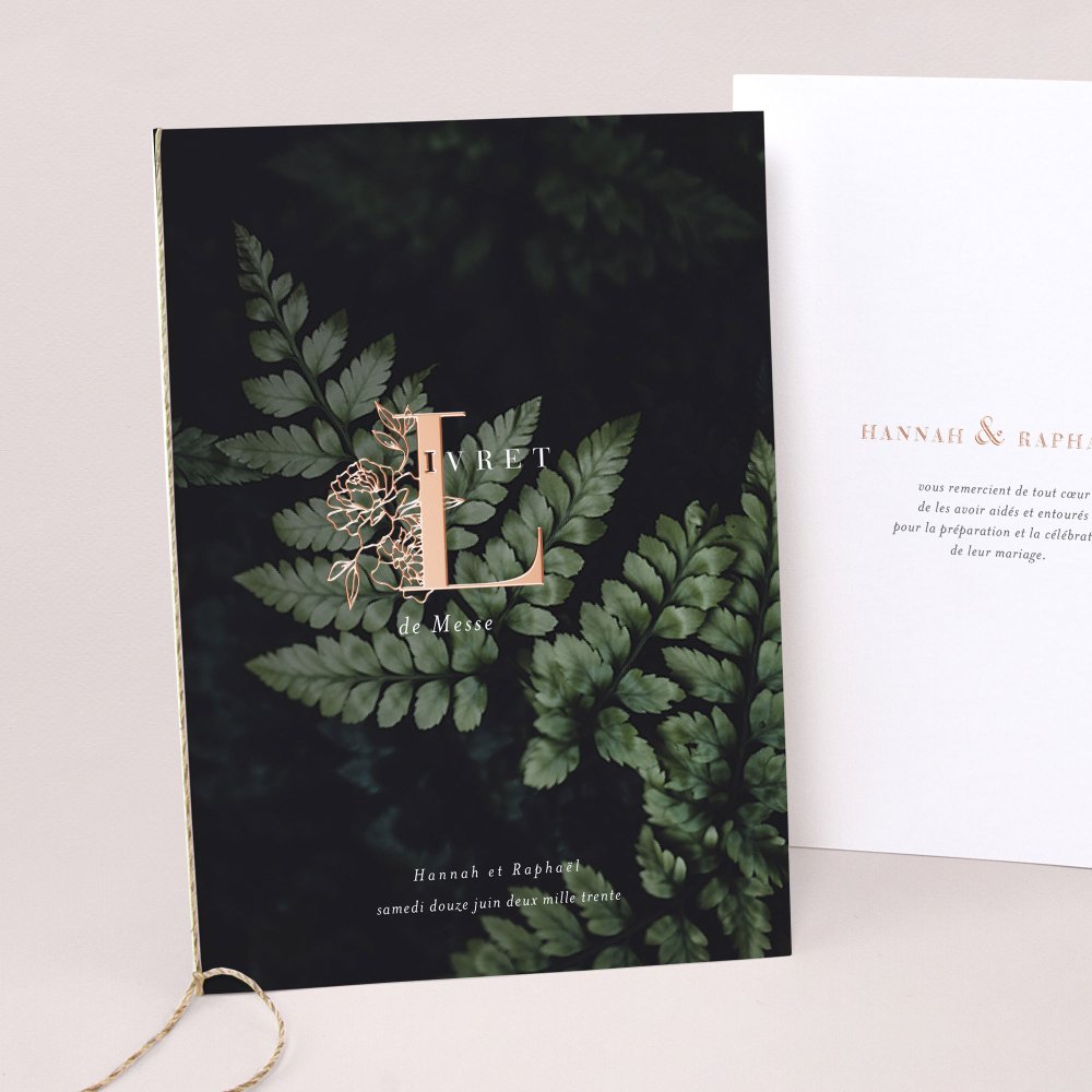 Couverture de livret de messe assortie à votre faire-part, agrémentée d'un ruban (en option et coloris au choix). Les feuillets intérieurs ne sont pas fournis.