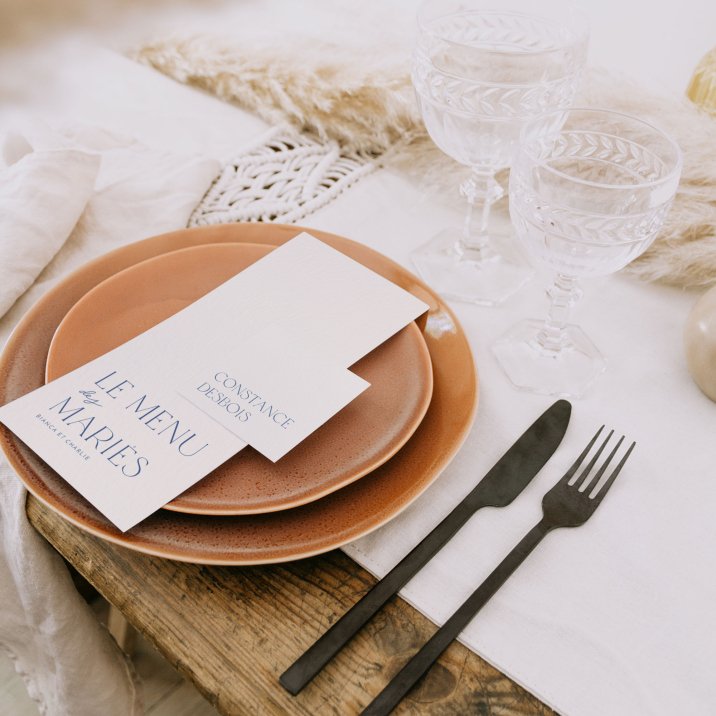 Vous avez établi votre menu de mariage, alors faites-le imprimer sur nos menus assortis à votre faire-part !
