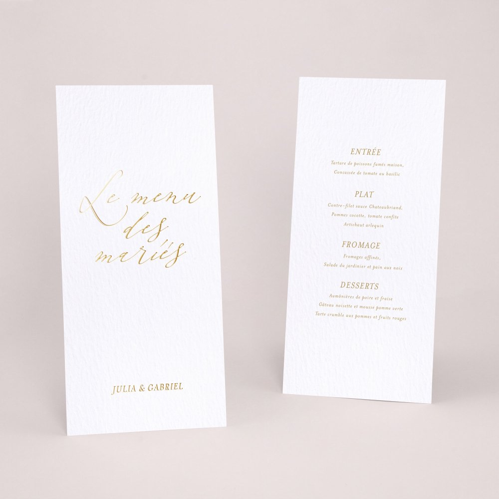 Vous avez établi votre menu de mariage, alors faites-le imprimer sur nos menus assortis à votre faire-part !