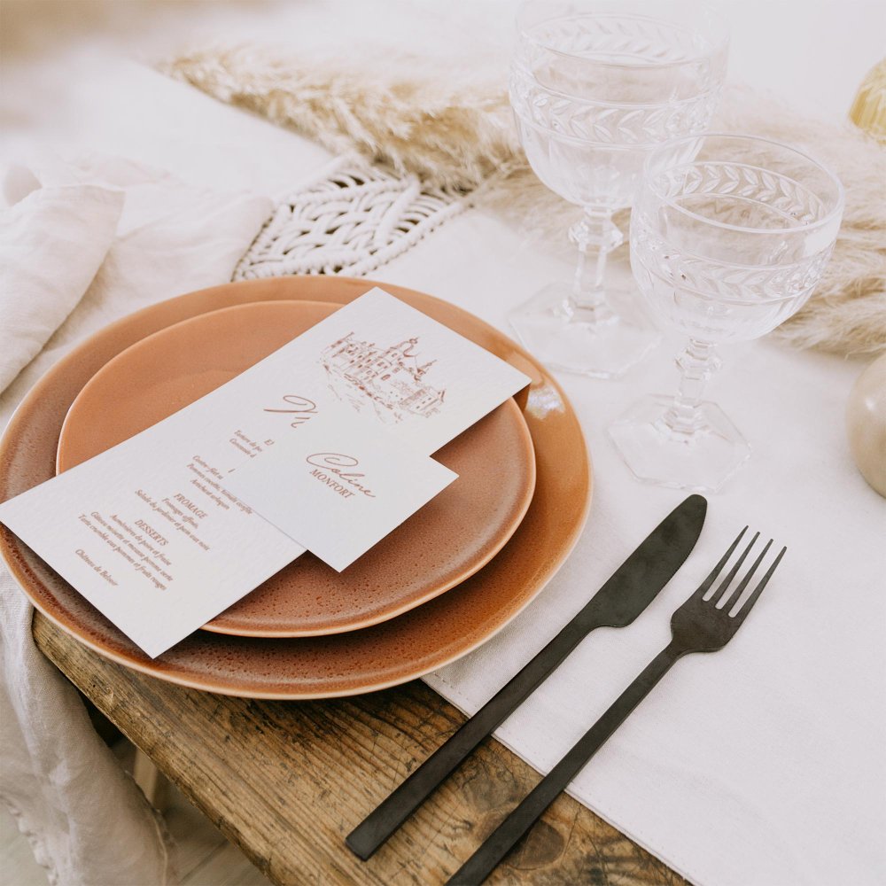 Vous avez établi votre menu de mariage, alors faites-le imprimer sur nos menus assortis à votre faire-part !