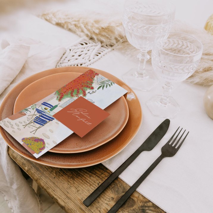 Vous avez établi votre menu de mariage, alors faites-le imprimer sur nos menus assortis à votre faire-part !