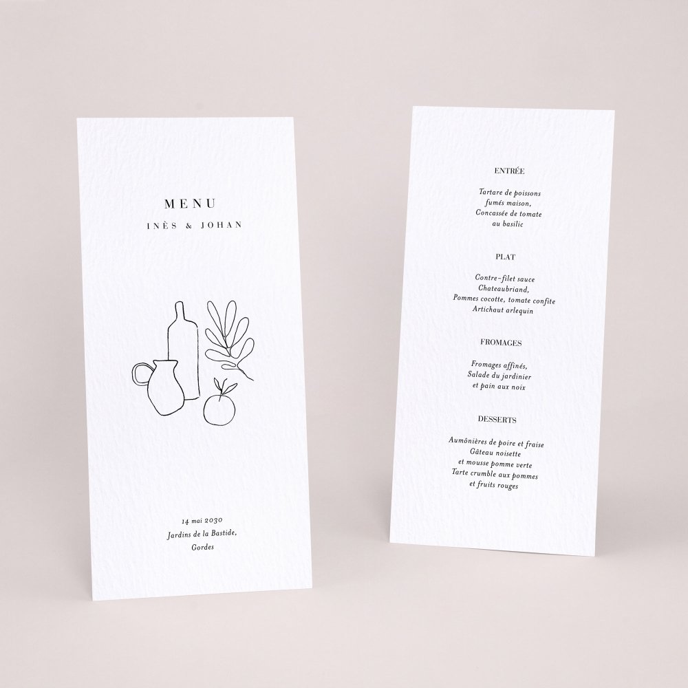Vous avez établi votre menu de mariage, alors faites-le imprimer sur nos menus assortis à votre faire-part !