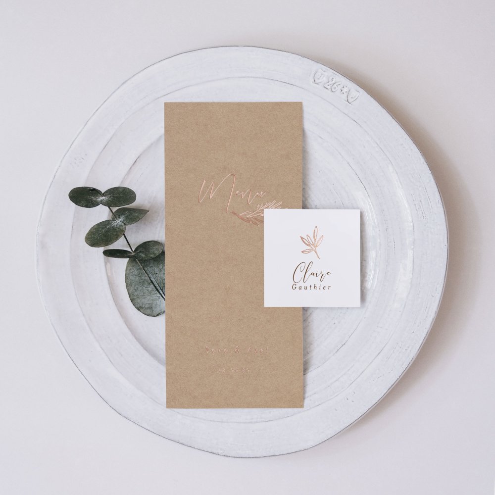 Vous avez établi votre menu de mariage, alors faites-le imprimer sur nos menus assortis à votre faire-part !