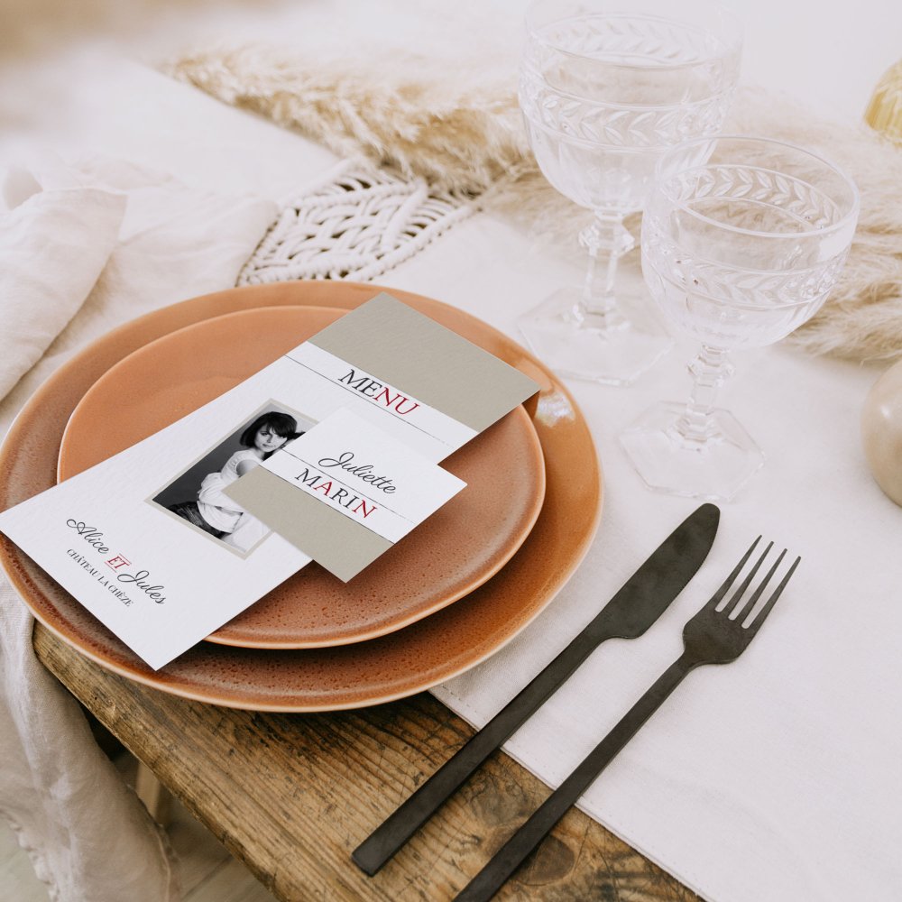 Vous avez établi votre menu de mariage, alors faites-le imprimer sur nos menus assortis à votre faire-part !