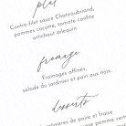 Vous avez établi votre menu de mariage, alors faites-le imprimer sur nos menus assortis à votre faire-part !