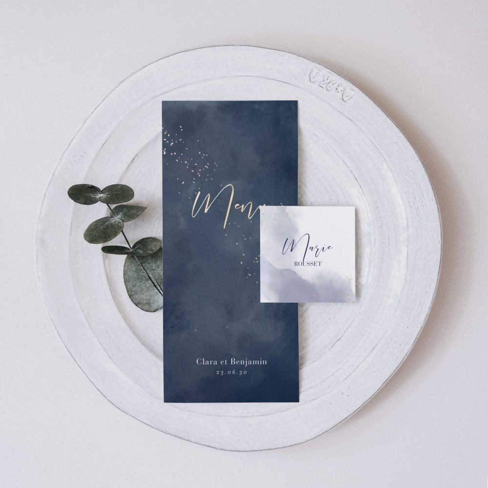Vous avez établi votre menu de mariage, alors faites-le imprimer sur nos menus assortis à votre faire-part !