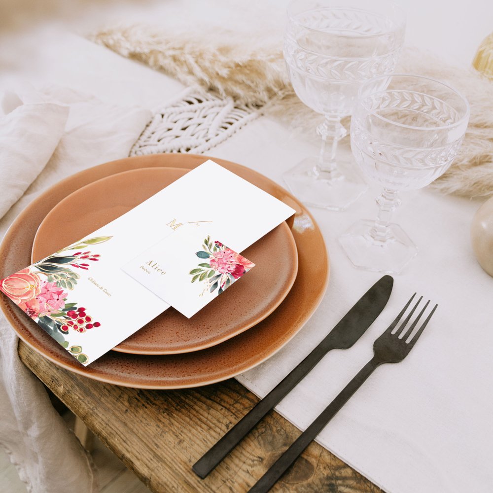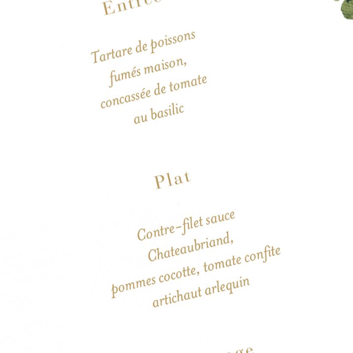 Vous avez établi votre menu de mariage, alors faites-le imprimer sur nos menus assortis à votre faire-part !