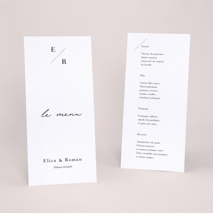 Vous avez établi votre menu de mariage, alors faites-le imprimer sur nos menus assortis à votre faire-part !