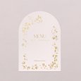 Avec son élégante découpe en forme d'arche, ce menu de mariage, assorti à vos faire-part, complétera merveilleusement votre décoration de table. Présentez-le sur un élégant porte-carte en bois (disponible en option), déposez-en un sur chaque assiette, sublimez-les d’un joli ruban…