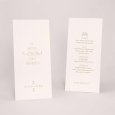 Avec son élégante découpe en forme d'arche, ce menu de mariage, assorti à vos faire-part, complétera merveilleusement votre décoration de table. Présentez-le sur un élégant porte-carte en bois (disponible en option), déposez-en un sur chaque assiette, sublimez-les d’un joli ruban…